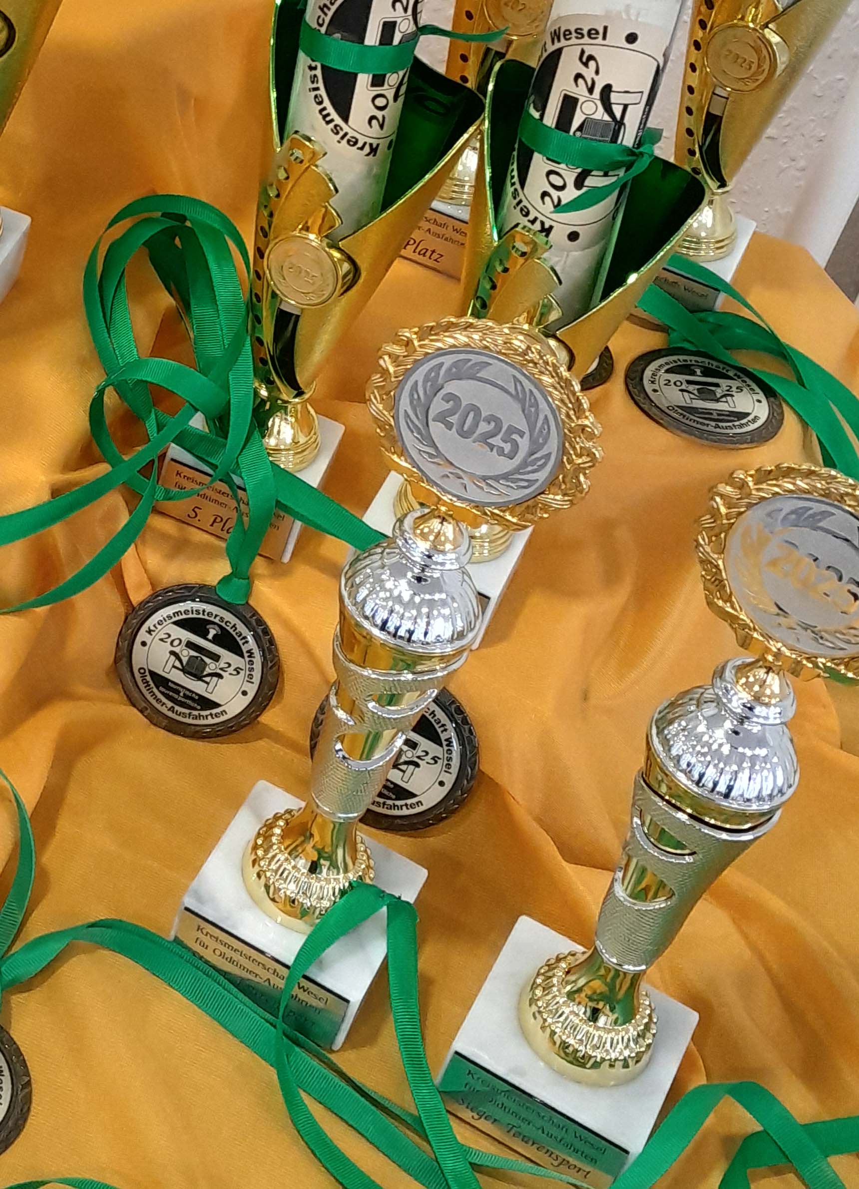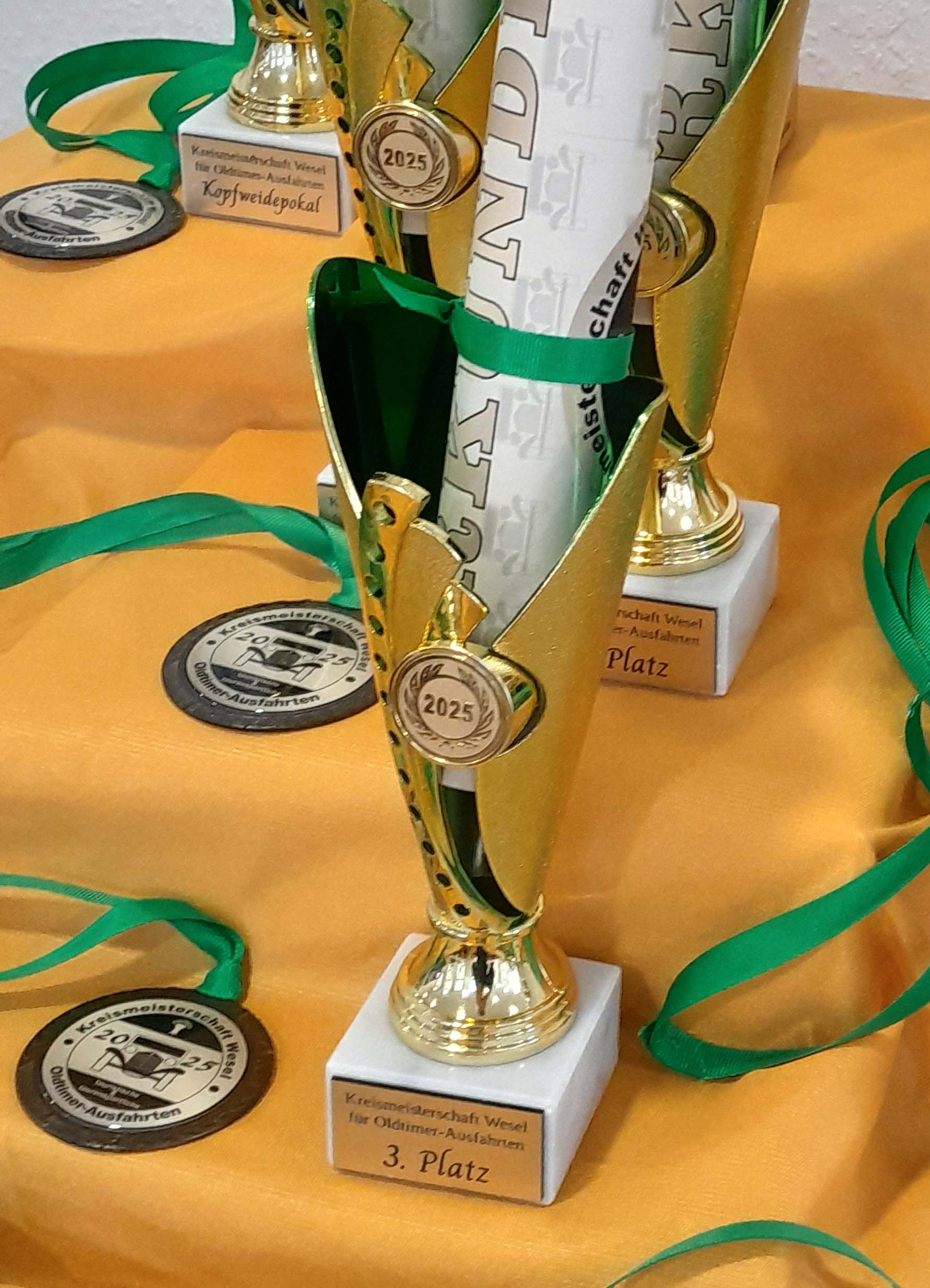 Im offiziellen Belohnungsteil erhielt jeder Anwesende seine Medaille und personaliserte Urkunde fürs Dabeisein in der Saison nach seinen individuellen Möglichkeiten. Die glücklichen Inhaber der ersten fünf Plätze durften zudem für ihre Erfolge auch gold-grün-strahlende Pöttchen in Empfang nehmen. Das Team Holger Appelt & Christian Funck wurde Sieger Tourensport. Über die Kreismeisterschaft 2025 und den Kopfweidepokal freute sich die Frau Holzdeppe 🙂