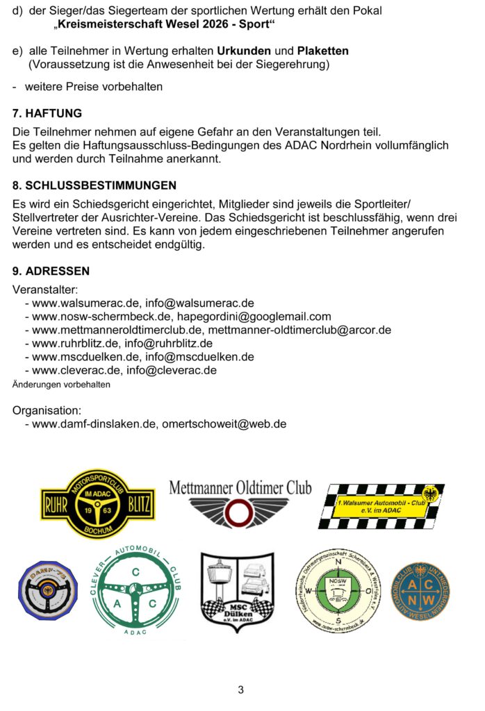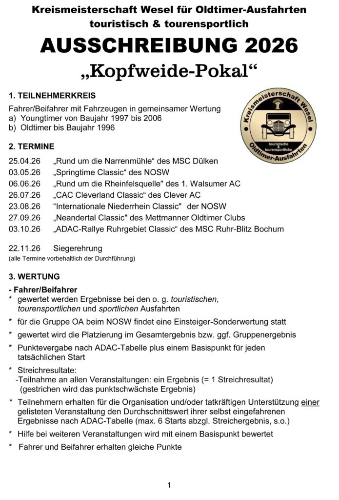 „Kreismeisterschaft Wesel für Oldtimer-Ausfahrten“